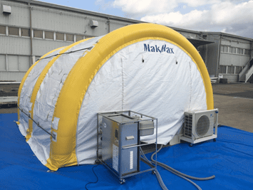 太陽工業株式会社の災害・緊急用エアテント「マク・クイックシェルター」シリーズを例に、仕組みや機能をご紹介していきます。