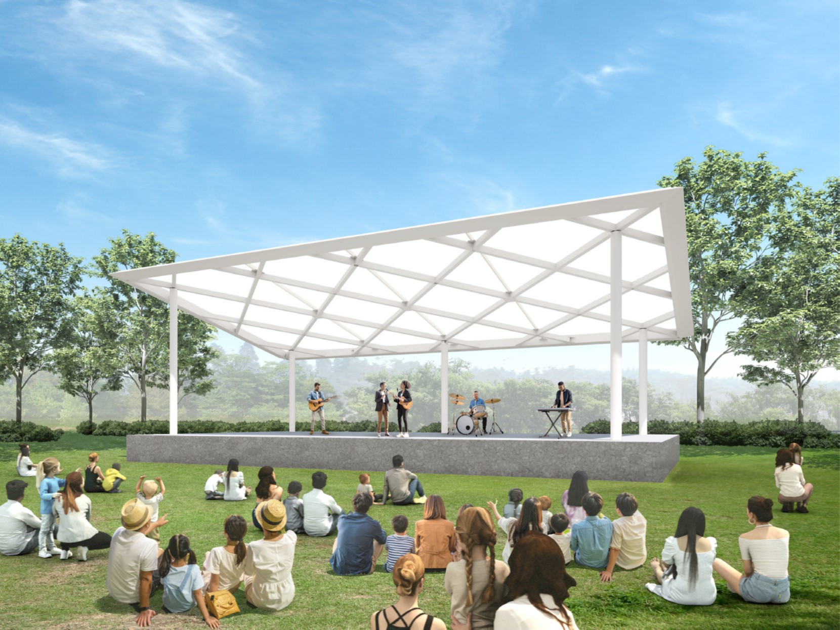 近年、猛暑や豪雨の頻発により、これまで屋根が設置されていなかった運動場や公園などの公共スペースでの、日差しや雨を防ぐための屋根需要が高まっています。こうしたニーズに応えるべく、両社は足場工事を必要とせず、既存のスペースにも後付けできる新しいタイプの膜屋根を開発しました。