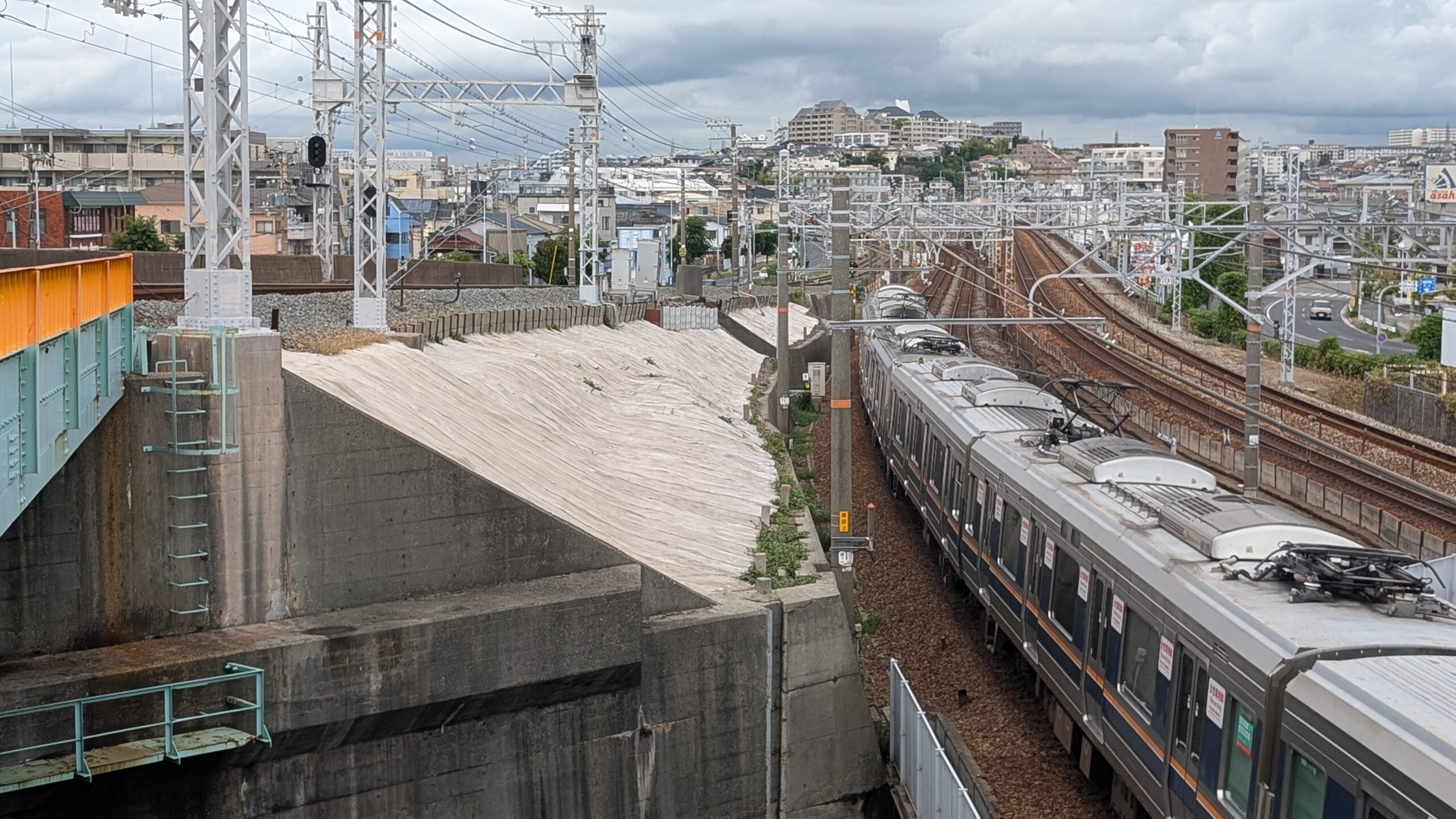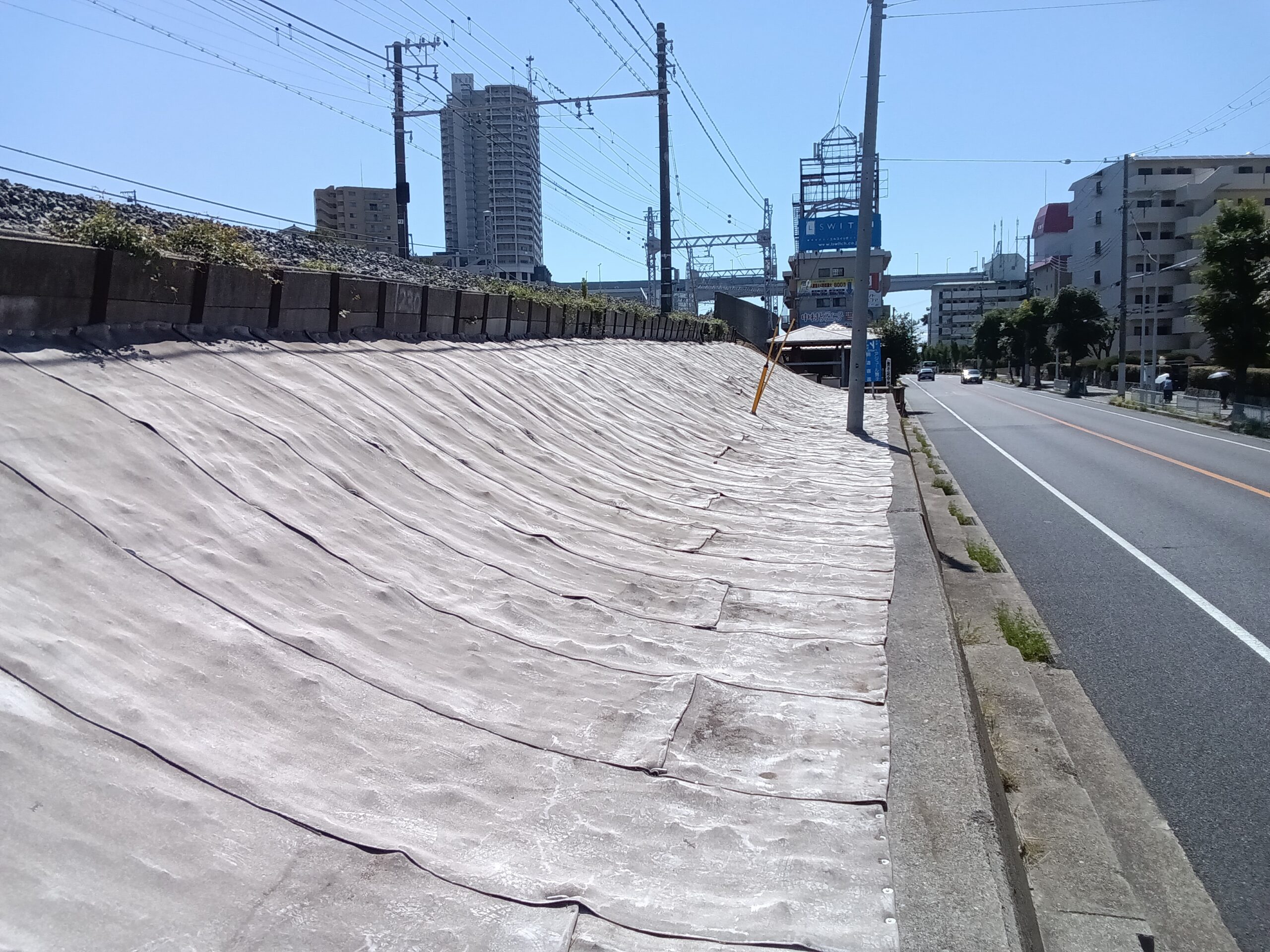 水をかけるだけで薄く高耐久・高水密・耐火性に優れたコンクリート面を作ることができるコンクリートキャンバス®は、現場打設のための重機や特殊技能を必要としません。平成30年7月豪雨(西日本豪雨)による末政川破堤の復旧、令和7年7月完工した舞子架道橋西方法面整備工事(施主:山陽電気鉄道株式会社)でも使用されました。また、複雑な形状に馴染みやすい特徴を生かし、万博サウナ「太陽のつぼみ」*の床面でも採用されました。