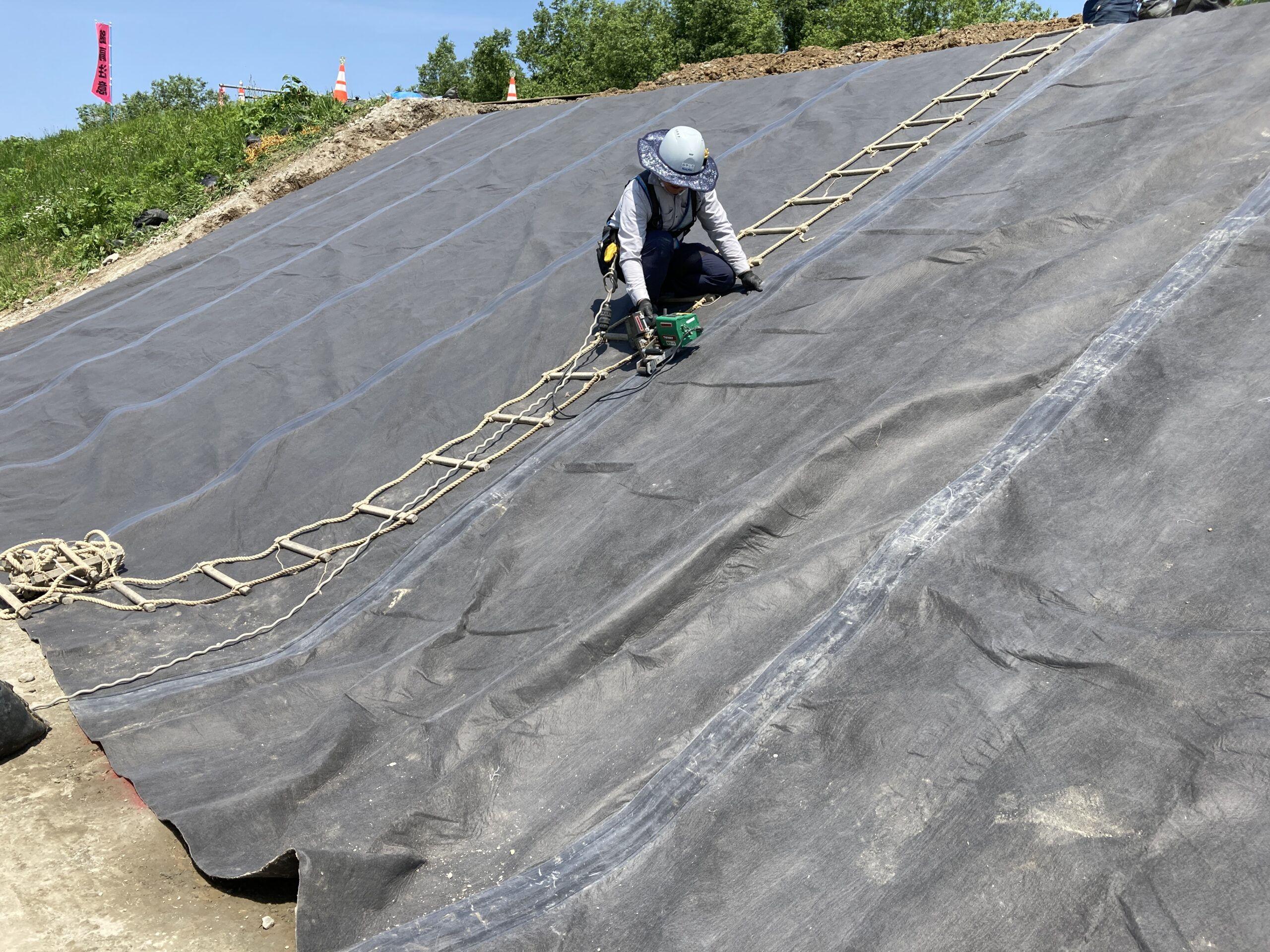 大型膜面構造物(テント構造物)や土木・物流資材などを手がける太陽工業株式会社(東京本社:東京都世田谷区、大阪本社:大阪市淀川区、代表取締役社長:能村 祐己)は、秋田河川国道事務所管轄の子吉川水系 石沢川の復旧工事に透気防水シート 「ブリーザブルシート」を施工しました。同製品は一般財団法人国土技術研究センターによる「粘り強い河川堤防に関する技術」(第1回技術公募)の公募によって、越水に対する性能等が一定程度確認された評価段階「分類B」に認定されており、越水対策として全国で初めて採用設置されました。