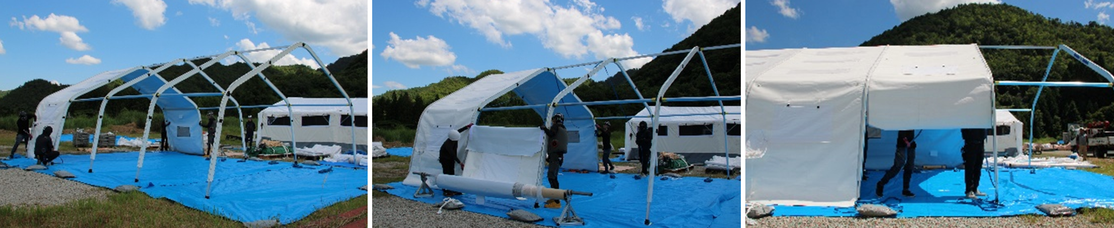 次世代型テント「GREEN FLEX」組み立ての様子