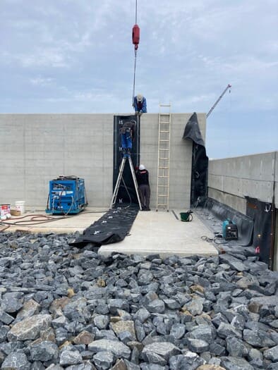 港湾におけるコンクリート構造物の目地からの裏込材流出を防止します。(ケーソン・L型ブロック・直立消波ブロックなど)