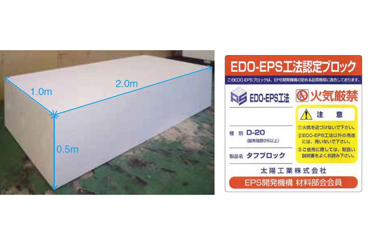 発泡スチロール土木工法(EDO-EPS工法)は、大型の発泡スチロールブロック(商品名;タフブロック)を盛土材料とした軽量盛土工法です。