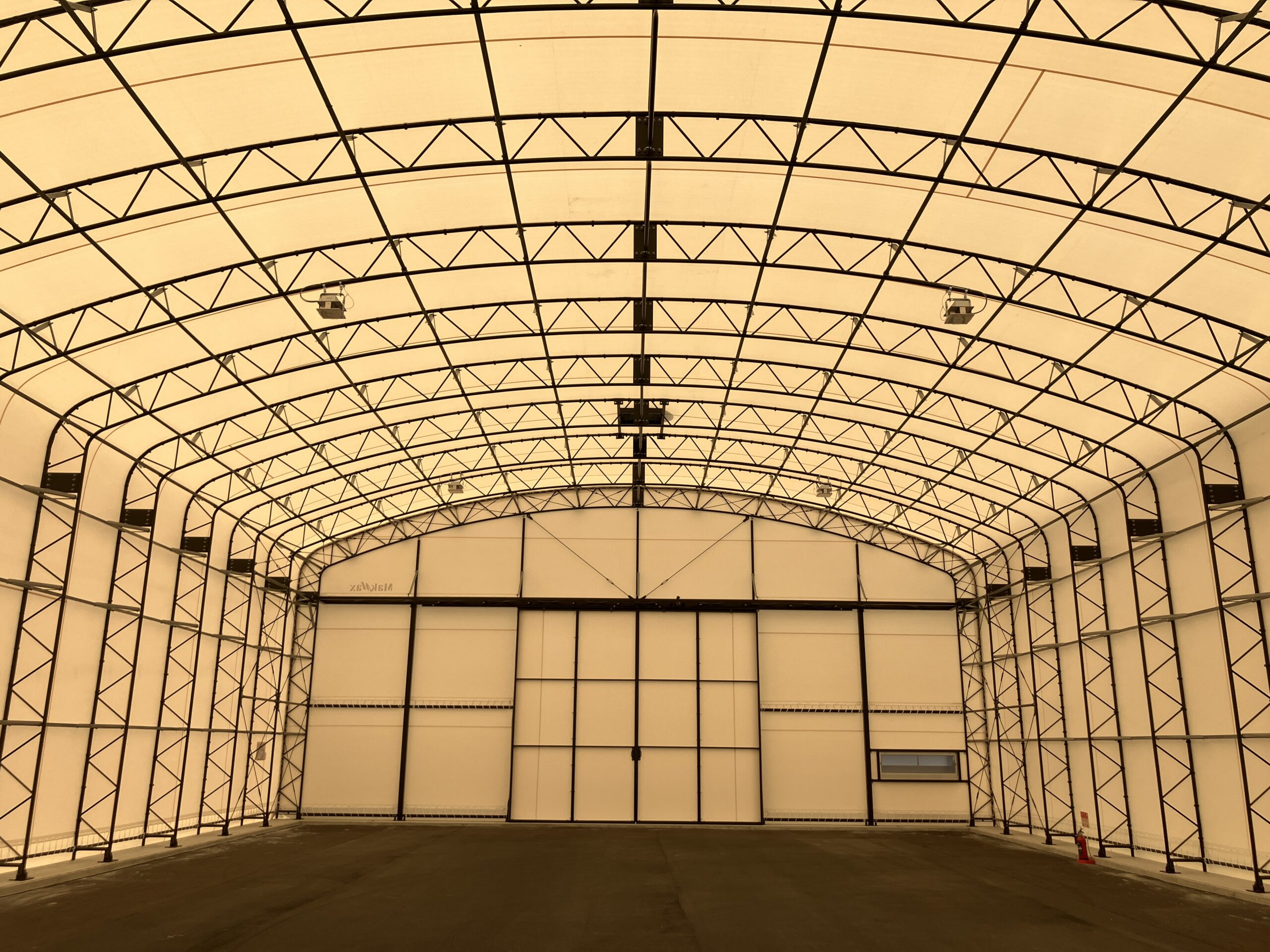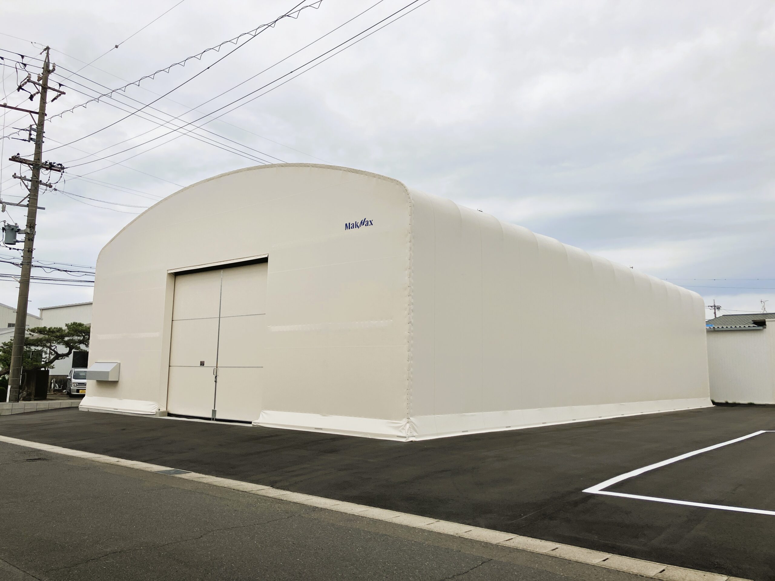 大型保管物に対応して間口を30mから50mまで対応可能にしたメガクラスのテント倉庫です。